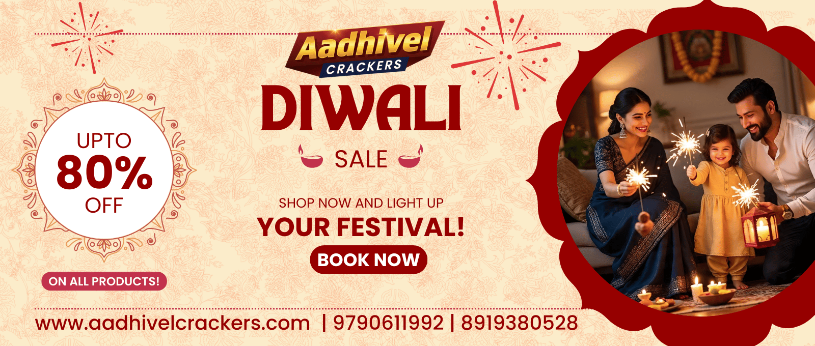 Need assistance or a custom quote? Our dedicated team at Lakshmi Pattasu Kadai is just a call or WhatsApp message away, ready to help you choose the perfect Aadhivel Crackers for a memorable and value-packed celebration.
